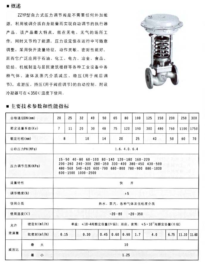 ZZYP型自力式壓力調(diào)節(jié)閥是不需要任何外加能源,利用被調(diào)介質(zhì)自身能量而實(shí)現(xiàn)自動(dòng)調(diào)節(jié)的執(zhí)行器產(chǎn)品,該產(chǎn)品***大特點(diǎn),能在無電、無氣的場(chǎng)所工作,同時(shí)又節(jié)約了能源,壓力設(shè)定值在運(yùn)行中可隨意調(diào)整。采用快開流量特征,動(dòng)作靈敏,密封性能好,因面它廣泛應(yīng)用于石油、化工、電力、冶金、食品、輕紡、機(jī)械制造與居民建筑樓群等各種工業(yè)設(shè)備中各種氣體、液體及蒸汽介質(zhì)減壓、穩(wěn)壓(用于閥后調(diào)節(jié))、或泄壓、持壓(用于閥前調(diào)節(jié))的自動(dòng)控制、附設(shè)冷凝器可在<350C溫度下使用。